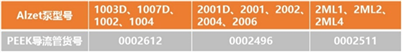 Alzet滲透壓泵也可在MRI實驗中應用,只需將泵內(nèi)的不銹鋼導流管更換為PEEK材質(zhì)的導流管即可。不同Alzet泵型號對應PEEK導流管如下:
