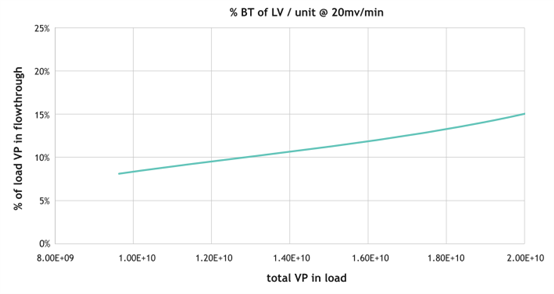 圖3. 15%穿透時,每根離心柱的動態(tài)結(jié)合載量1.9E+10。 Nereus LentiHERO?離心柱以20 mv/min的速度上樣,流穿收集在10mL液體中,使用p24 ELISA分析,基于上樣的總VP,計算VP穿透百分比。