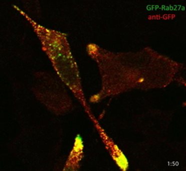 AtT-20轉染表達GFP-Rab27a后用GFP抗體免疫染色結果