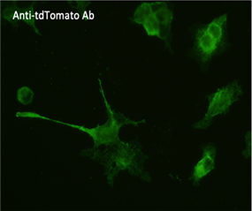 HEK293細胞轉染cDNA后用4%PFA固定,然后用1/50稀釋的anti-tdTomato抗體做免疫熒光的結果
