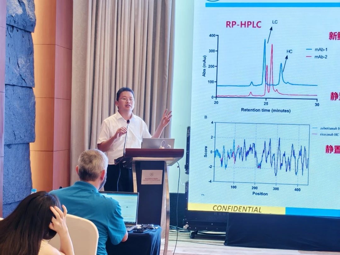 浙江大學(xué)研究員方偉杰博士作了主題為“毛細(xì)管凝膠電泳在蛋白類生物藥分析中的應(yīng)用和進(jìn)展”,結(jié)合具體案例和實(shí)驗(yàn)數(shù)據(jù),分別把CE-SDS在非還原條件下對重組蛋白的純度研究、還原條件下對單抗重鏈和輕鏈的異質(zhì)性分析,以及CE-SDS在小蛋白和多肽類生物藥的應(yīng)用與研究進(jìn)展做了詳細(xì)報告,為CE-SDS方法在生物制品質(zhì)量控制的應(yīng)用提供了更廣闊的思路。