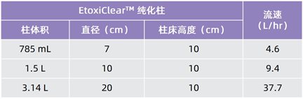 EtoxiClear?可提供填料和預(yù)裝柱兩種形式產(chǎn)品,以滿足不同的實(shí)驗(yàn)需求。下表可用于估算處理不同規(guī)模樣品所需的柱尺寸。