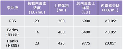 針對常用緩沖液的內(nèi)毒素清除數(shù)據(jù)