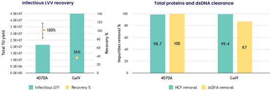- LentiHERO®具備強(qiáng)大的雜質(zhì)去除能力,在不影響載體功能的情況下可去除>98%的HCP及>87%的dsDNA殘留