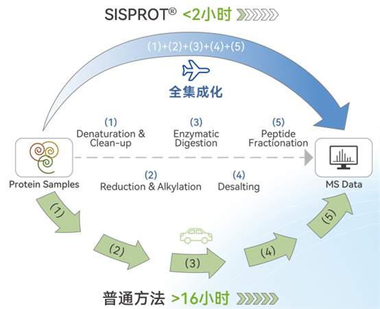 傳統(tǒng)方法需要16小時,SISPROT試劑盒可實現(xiàn)2小時內(nèi)完成樣品前處理所有步驟,處理后的樣品可直接上機檢測。