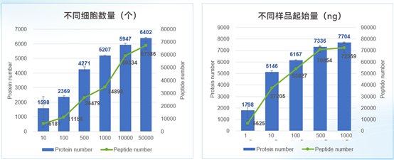 100ng可以穩(wěn)定檢測到約6000種蛋白質(zhì)。最低樣本初始量可低至或1ng(相當于10個細胞)。