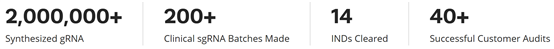 Synthego’s GMP-grade gRNAs and nucleases set the benchmark for quality, reliability, and compliance in CRISPR clinical manufacturing. Developed under strict Good Manufacturing Practice (GMP) guidelines, these products are tailor-made to meet the precise standards required for IND submissions and therapeutic-grade applications. With Synthego as your partner, you’ll benefit from cutting-edge manufacturing capabilities coupled with the assurance of meeting even the most demanding regulatory requirements. Having supported over 12 IND submissions for CRISPR therapies, Synthego has become a trusted name in the industry. Leaders continue to rely on us not just for our products, but for the assurance that their work is built on a foundation of excellence. Our GMP offering stands as a testament to our commitment to revolutionize the field of gene editing with therapeutic outcomes in mind.