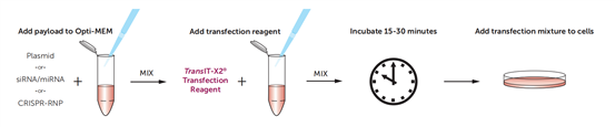 TransIT-X2® requires no complex pretreatment, significantly shortening the duration of transfection procedures. From complex preparation to sample loading, the entire process is rapid, greatly improving experimental throughput.