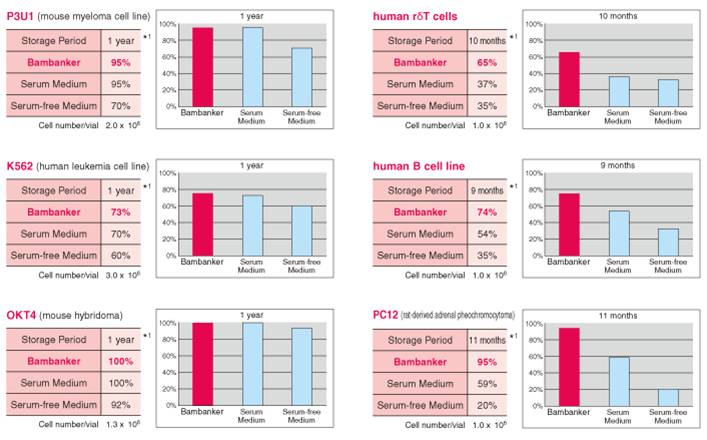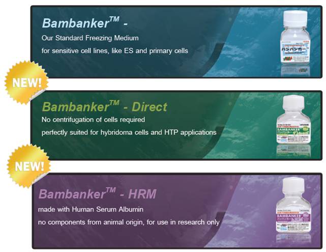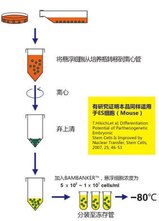 ?收集對(duì)數(shù)生長(zhǎng)期的細(xì)胞(5 x 105?~ 1 x 107)?用1ml?BambankerTM重懸細(xì)胞,置于凍存管中,無需預(yù)冷,直接-80℃或液氮冷凍保存細(xì)胞恒溫箱或水浴快速?gòu)?fù)蘇細(xì)胞